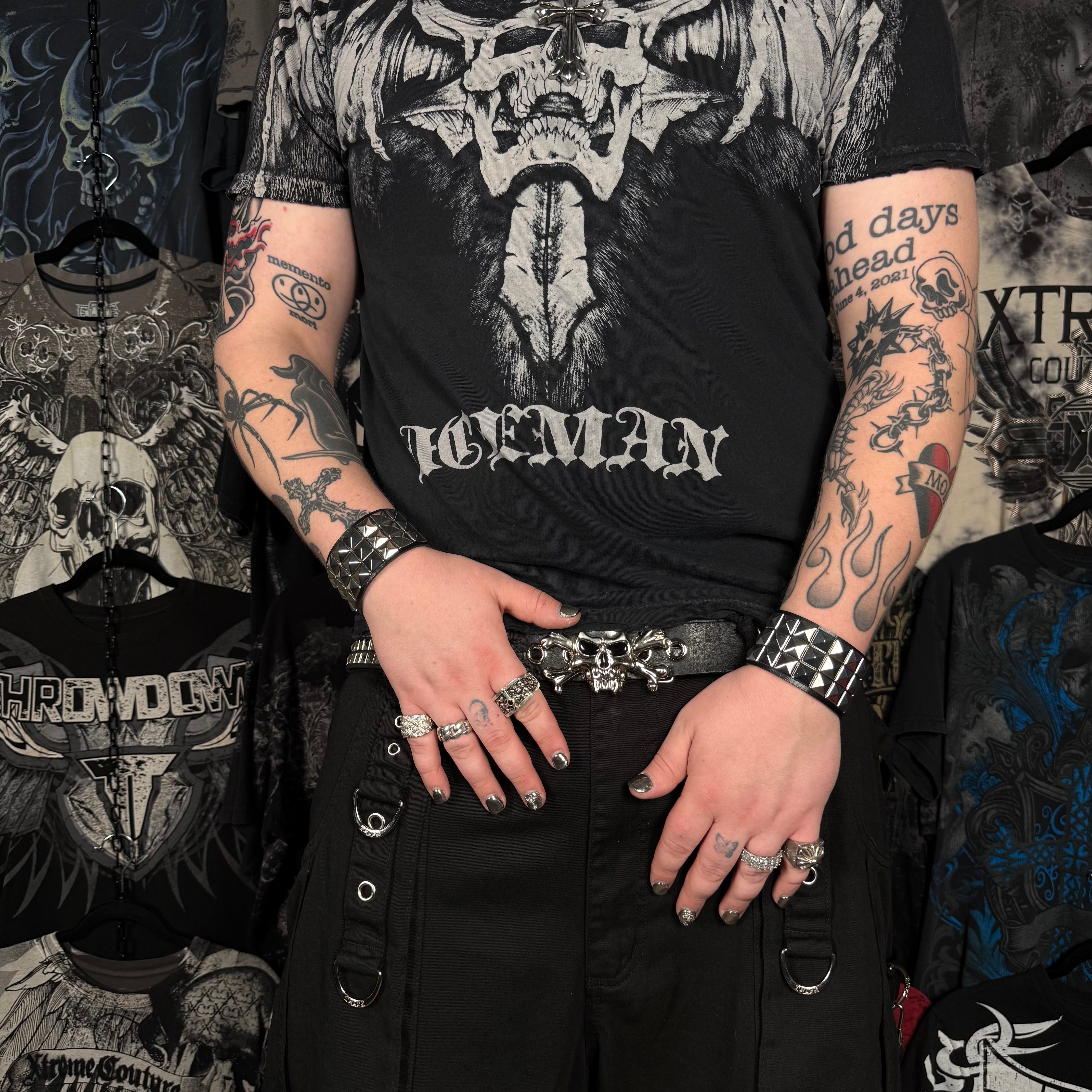 Our shop features skater and baggy streetwear, tribal graphics, skull tees, skeleton and grim reaper designs, emo, grunge, grungecore, gothcore, cybergoth, CyberY2K, punk, rave, and rock-inspired clothing. We also offer rare finds like JNCO, Kikwear, Paco Sport, Fox Racing, Monster, and pieces that match characters like Jesse Pinkman or artists like Sematary.