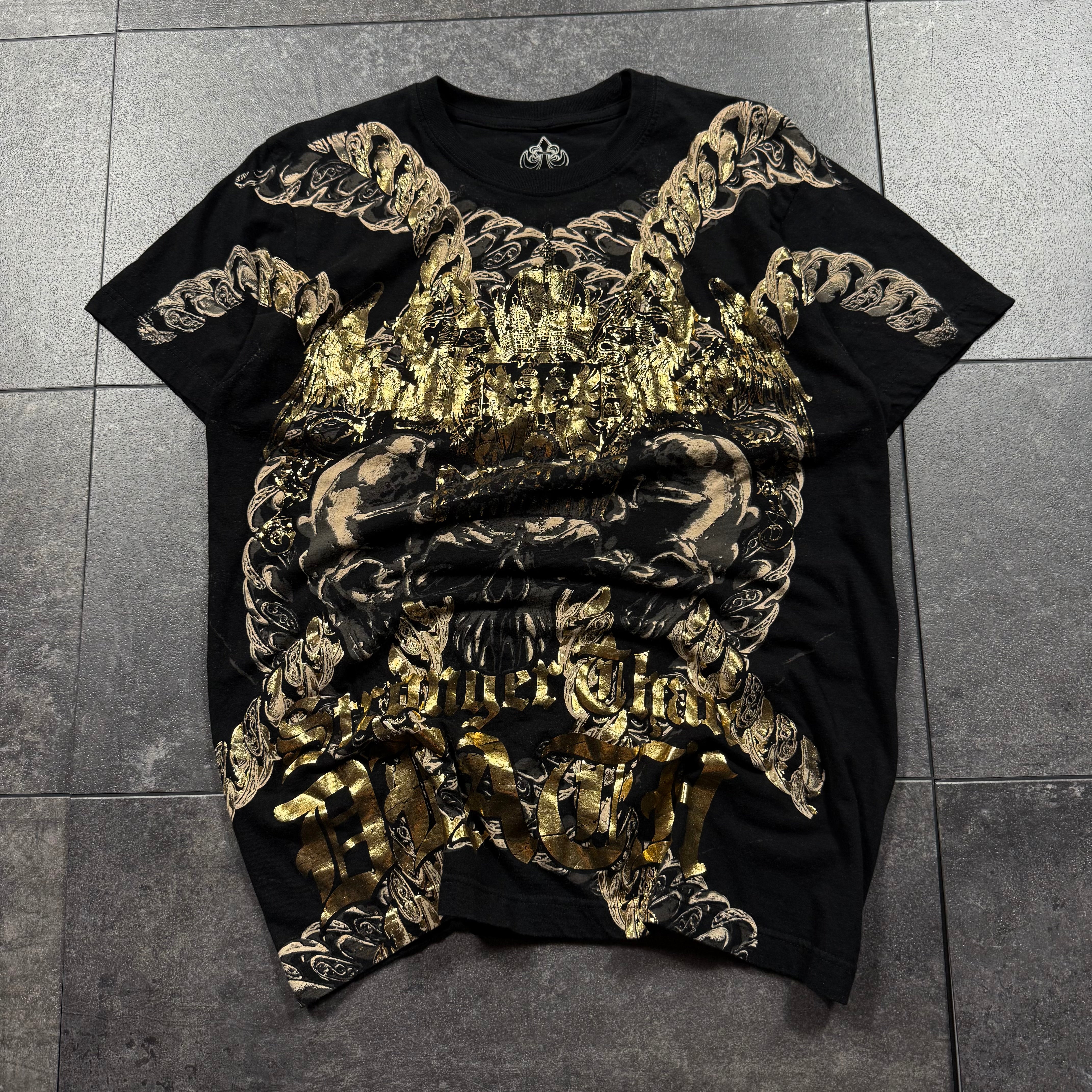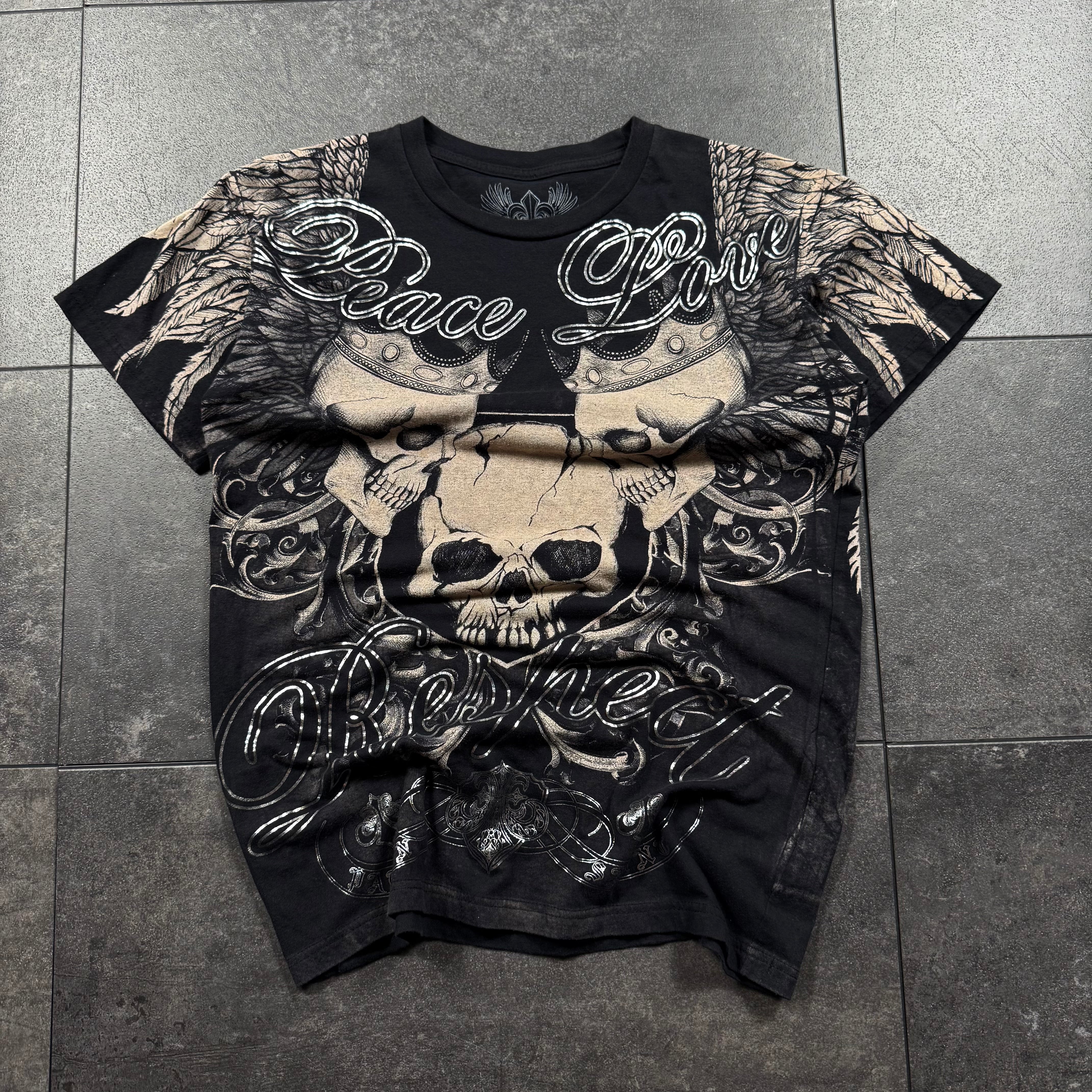Reaper Rags curates Y2K and 2000’s streetwear with a focus on Tapout, Affliction, MMA Elite, MMAElite, Christian Audigier, Ed Hardy, Avirex, Ecko Unltd, SouthPole, Coogi, Rocawear, Evisu, True Religion, FUBU, and vintage biker and mallgoth pieces. Every item is one-of-one with real photos, legit quality, and fast shipping.