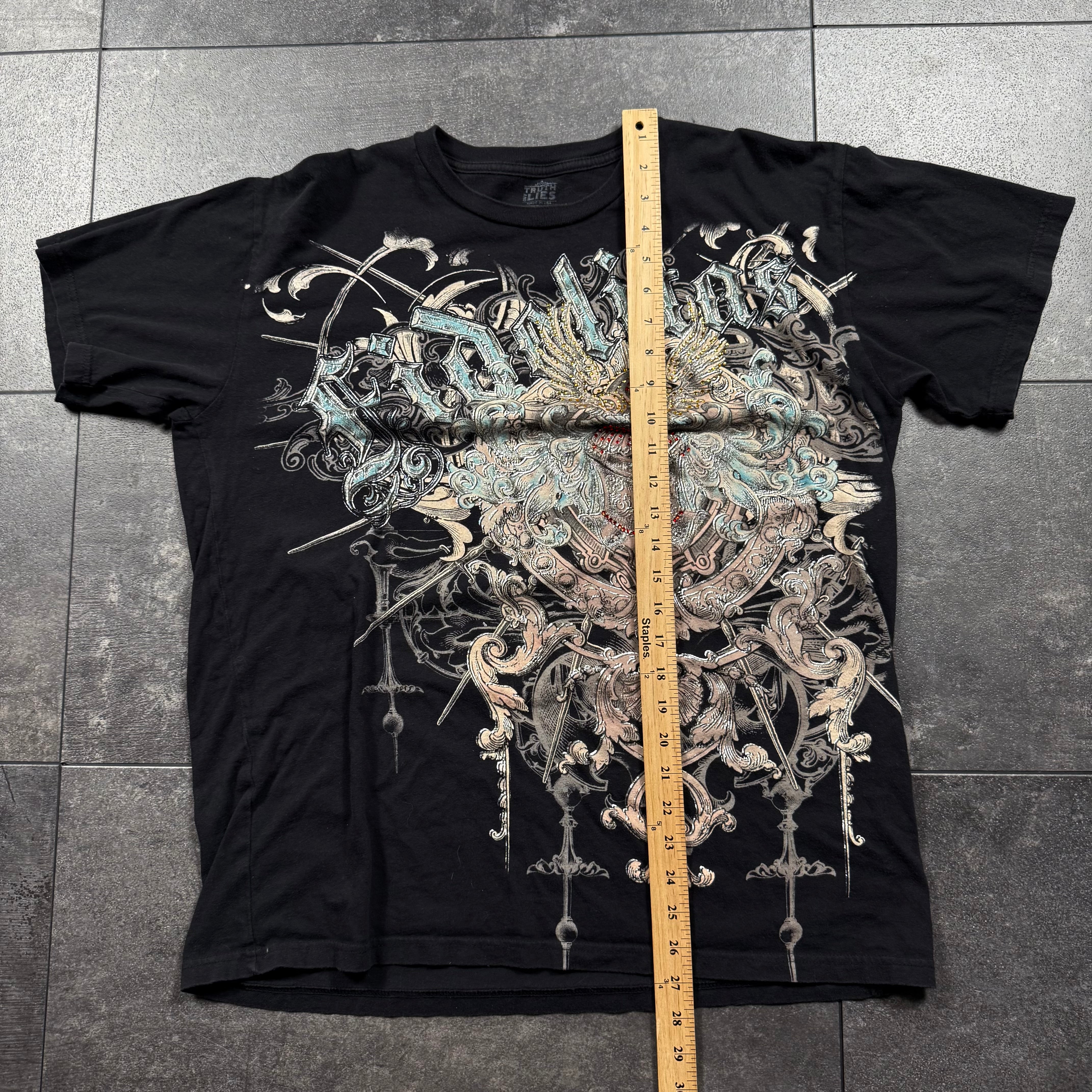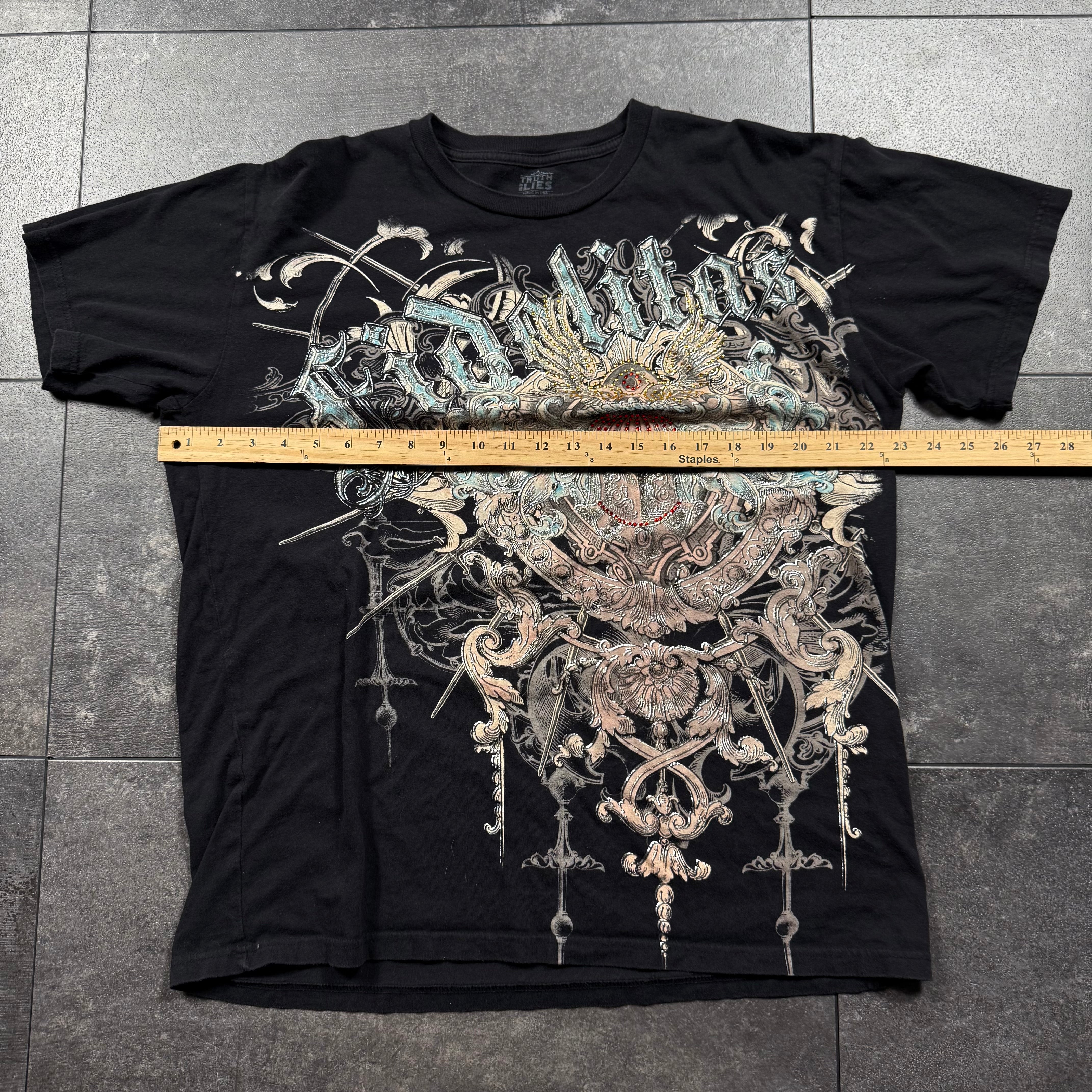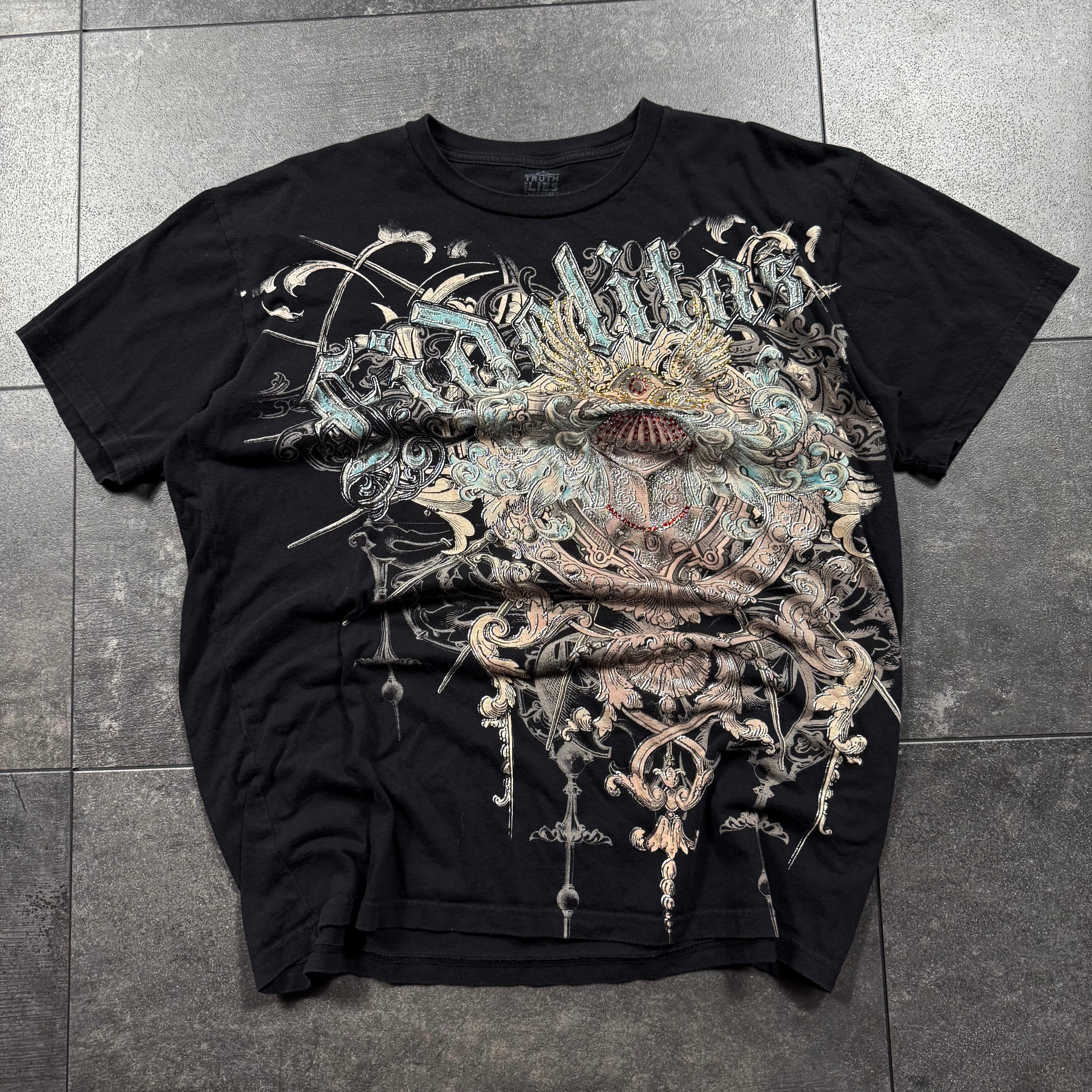 (rare) 2000s Truth&Lies Rhinestone Shirt (XL)
